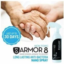Armor8 is a revolutionary long-lasting sterilising nano spray. It uses light to eliminates bacteria, fungi, mold & allergens that causes illness & odors.