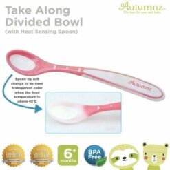 - Heat sensing spoon which is perfect size for baby’s mouth and changes colour if the food is too hot for baby.