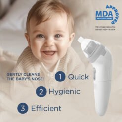 - 3 types of suction tips (< 3 mths, 3mths-1yr, >1 yr) are available to remove mucus from nose