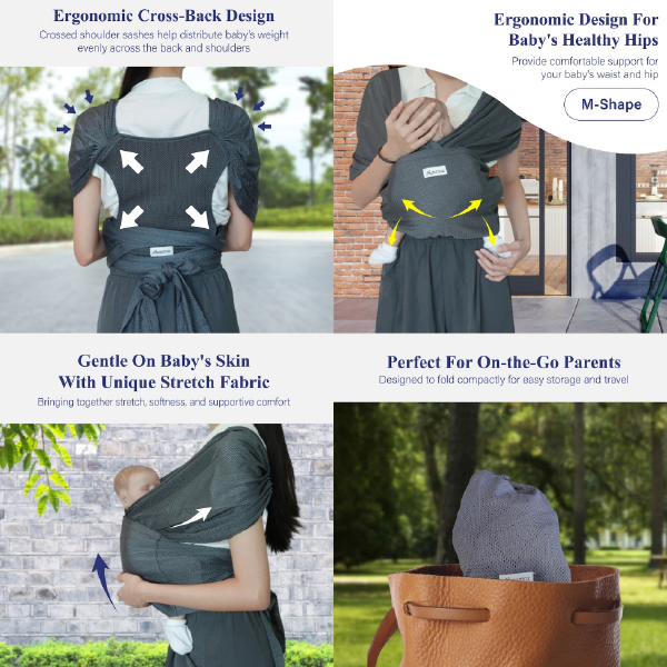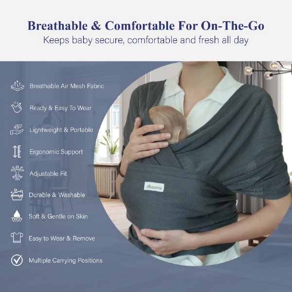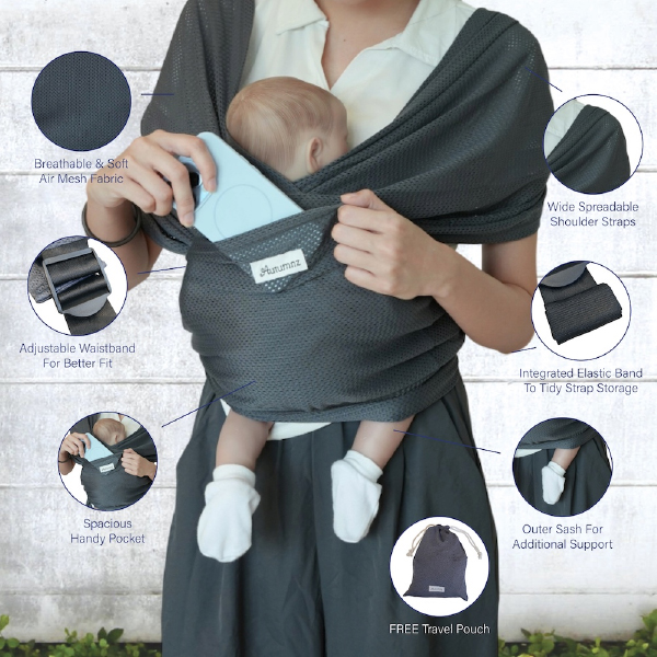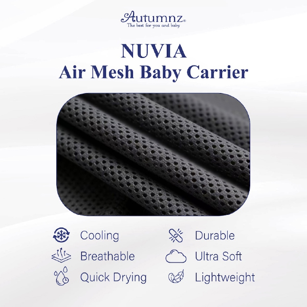 The Autumnz Nuvia Air Mesh Baby Carrier is designed to keep both parent and baby comfortable throughout the day. Made with breathable air mesh fabric, it allows better airflow to keep your baby cool while providing a snug and secure fit. The ergonomic design supports your baby in the recommended M-shaped position, promoting healthy hip development. With its cross-back shoulder design, the carrier helps distribute your baby’s weight evenly across your back and shoulders for improved comfort. Lightweight and compact, the carrier is easy to fold and perfect for travel, and comes with a FREE travel pouch for convenient storage.