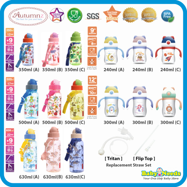 - Material Sippy Cup (Tritan), Cover & Handle (PP), Straw (Silicone), Weighted Ball (PP)