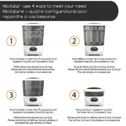 - Automatically sterilizes & dries 33% faster bottles, breast pump parts, pacifiers, teethers, sippy cups, toys & other accessories from any brand in 1 easy step, saving you time.