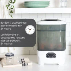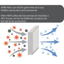 - Natural steam effectively sterilizes any brand/size of bottles, pump parts & accessories; Then dries 33% faster with replaceable HEPA-Filtered air that’s 95% germ-free; Products remain sterilized inside for up to 24 hours