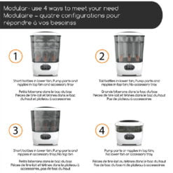 - Use 4 ways and features 4 functions: Features large lower bin, shorter upper bin and unique accessory tray; Use as a Sterilizer & Dryer, Sterilizer Only, Dryer Only or Storage System and never boil water or use a dirty drying rack again