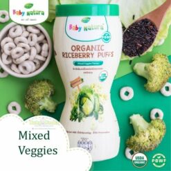 Baby Natura Organic Riceberry Puffs are made from organic Plant Based Whole Food (PBWF) ingredients that contain no animal ingredients, gluten and preservative; Helping you to ” Start Right… For Your Child’s Healthy Future” along with good nutrition and taste, the light texture and small size of puffs makes them a good choice for your child to develop hand-eye coordination and chewing.