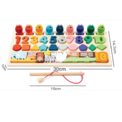 This colorful Multi-Functional Educational Board offers children multiple learning opportunities in one engaging set. Kids can explore numbers 1 to 10, shapes, colors, animals, and even play a fun fishing game. The toy is designed to develop hand-eye coordination, logical thinking, and problem-solving skills. The fishing game sharpens concentration and fine motor skills, while recognizing numbers, shapes, and animals helps build early math and cognitive abilities. This interactive set is a great way for kids to learn while having fun, making it an ideal educational tool for toddlers.