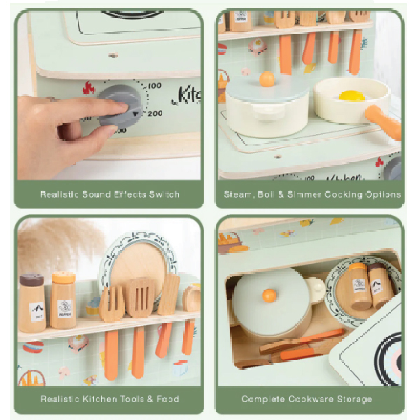 Baby Toys Premium Wooden Kitchen Play Set With Sound Effect