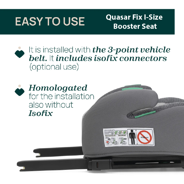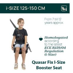 ● Quasar i-Size is a booster seat for transporting children between 125cm to 150cm tall (approximately 7 to 12 years old).