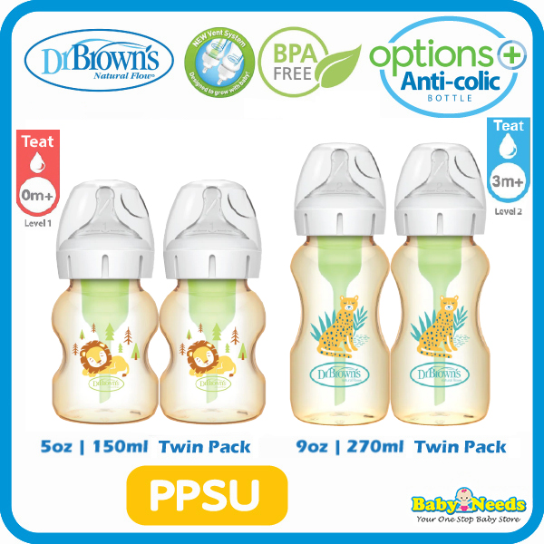 Dr Brown’s Options+ PPSU Wide Neck Twin Bottle ( 150ml/270ml ) [NEW Version]