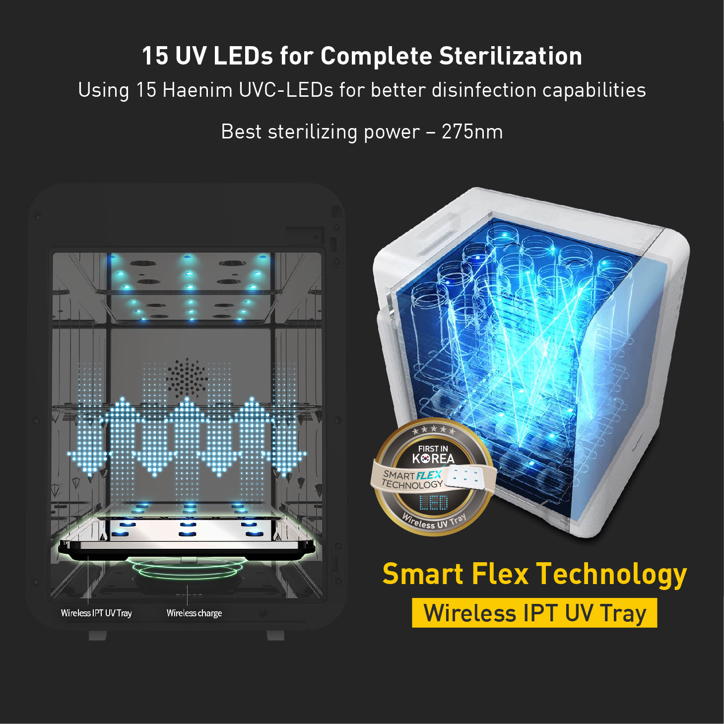 Using 15pcs UV-C LED for complete sterilization.