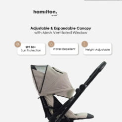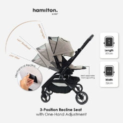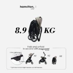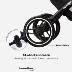 The new Hamilton stroller, T1 is made up of top-quality aluminium frame which carry your baby safely from birth to 4 years old, approx. 22kg.