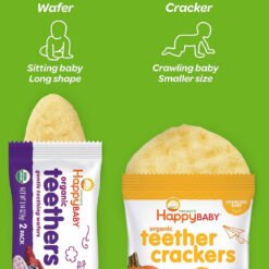 - THE PERFECT 1ST SNACK for Baby’s developing gums, our easily dissolving, organic teething wafers soothe and delight. They’re made with jasmine rice flour, a touch of organic fruits and vegetables, and contain no artificial flavors for truly happy smiles.