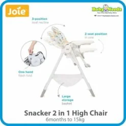 With plenty of room for bibs, wipes and other essentials, the spacious storage basket helps you avoid mealtime pickles.