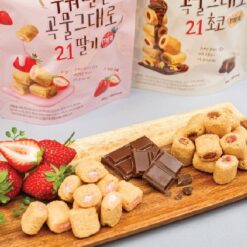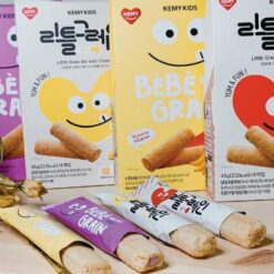 Kemy Baked Grain Crispy Roll 21 (Strawberry):Â GMW 20 (sugar, processed oil (palm oil, sorbitan fatty acid ester, soybean lecithin, citric acid), sweet whey powder), 21 mixed grains (brown rice, corn, white rice, black bean, millet, glutinous millet, rye, glutinous barley, sorghum, glutinous rice, buckwheat, mung bean, black sesame, red bean, green kernel black bean, black rice, glutinous black rice, kidney bean, black turtle bean, sesame, pea), palm olein oil, vegetable cream, strawberry powder 86, freeze dried strawberry powder (Korean Strawberry), potato starch, sugar, calcium carbonate, glucose, cream cheese powder, salt, d-tocopherol.