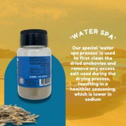 Use special ‘water spa process’ to first clean the dried anchovies and remove any excess salt used during the drying process, resulting in a healthier seasoning, which is lower in sodium
