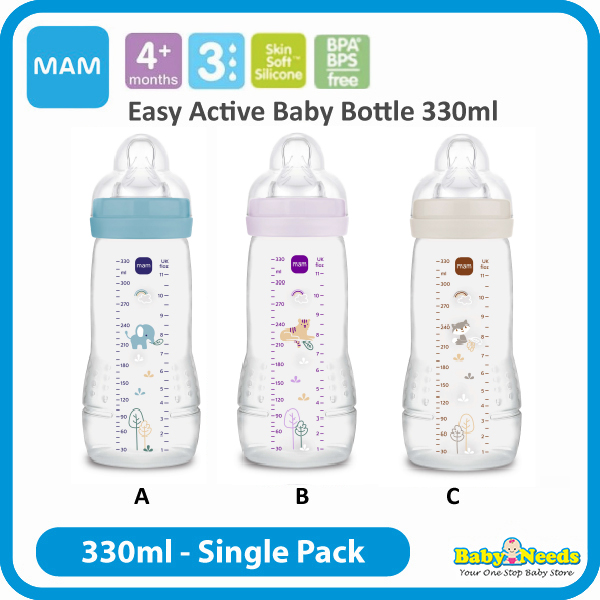 - MAM Easy Active Baby Feeding Bottle is available in two different sizes – 270ml (Teat 2+months) and 330ml (Teat 4+months)