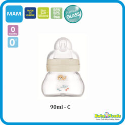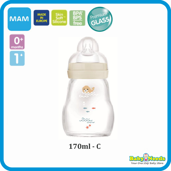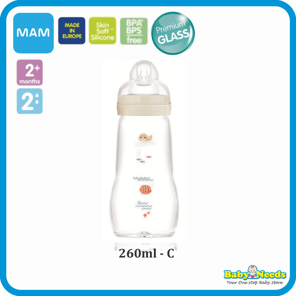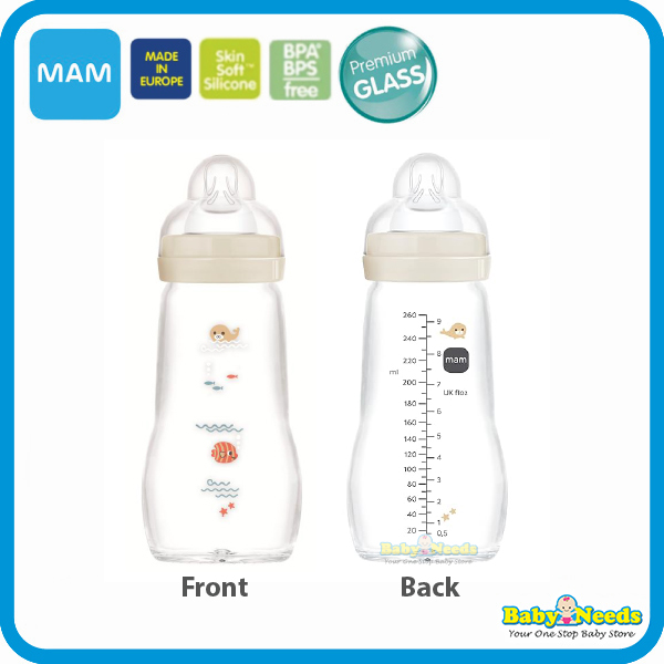 MAM Glass Bottle for baby’s first feeding Highly temperature resistant glass.