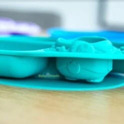 The whole set will not only makes meal time fun but the toddlers can also develop their self feeding skill. Parents found that their kids would get frustrated with the longer fork & spoon and lose their appetite. We shortened our regular fork and spoon set and turn the handle 90 degrees so the utensils will fit more easily into a toddler’s palm grip. Our Yummy Dips Suction Plate is divided into recommended portion sizes for easy meals and features a dipping compartment for delicious condiments. This makes self feeding easier and much more enjoyable.