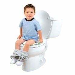 Potty like a rock star! Calm your little one’s fears of falling in the big toilet with Munchkin’s Sturdy Potty Seat. The easy-to clean potty seat fits most standard toilets and is contoured to hold your child securely in place. Easy-grip handles add stability and a non-skid edge prevents the seat from moving around – giving your little one more confidence when navigating tricky new waters. Also included are a built in pee guard and ‘feet’ for easy stand-up storage. You will no longer toil through toilet training with this comfortable potty seat.