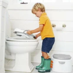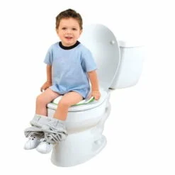 Potty like a rock star! Calm your little one’s fears of falling in the big toilet with Munchkin’s Sturdy Potty Seat. The easy-to clean potty seat fits most standard toilets and is contoured to hold your child securely in place. Easy-grip handles add stability and a non-skid edge prevents the seat from moving around – giving your little one more confidence when navigating tricky new waters. Also included are a built in pee guard and ‘feet’ for easy stand-up storage. You will no longer toil through toilet training with this comfortable potty seat.