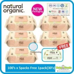 Natural Organic Baby Wipes Original Embossing 100 sheets (5pack Free 1pack 30 sheets)