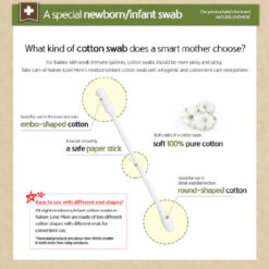 Two-thirds the size of a regular cotton swab, which is hygienic and convenient for use in every detail of your child