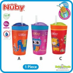 Nuby Snack N’ Sip Cup 12m+ (270ml/9oz) Nûby’s new Snack N’ Sip™ range of cups allows your child to eat and drink from the same container! This revolutionary design is made for the parent on-the-go and is great for day picnics, hikes, and your child’s recreational activities! The soft silicone straw is uniquely designed to prevent drips and spills while being delicate and gentle to gums and teeth. All Nûby™ products are made of safe, durable, materials and exceed all government safety regulations and standards.
