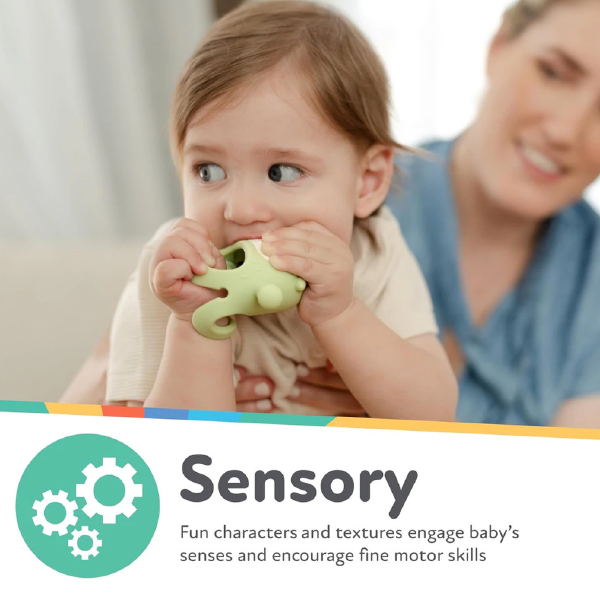 Give your little one a hand with teething! The Silicone Teething Mitten is the perfect solution for babies who aren’t yet able to hold onto teethers. The soft silicone mitten fits over little hands, and the inner bar provides extra grip support for babies to grasp. Plus, the mitten protects babies from chewing on their hand—or anything else they could get their teeth on. The character’s “arms” mimic a nipple, helping further soothe fussy little ones.