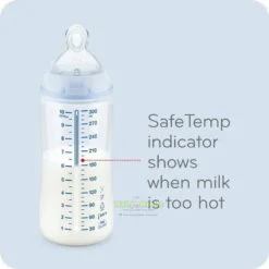 150ml/5oz teat size M 0-6month / 300ml/10oz Size M 6-18m - Additional safety of temperature indicator. If the food is too hot, the normally blue indicator turns white.