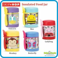 Skip Hop Zoo Insulated Food Jar helps to keep food warm or cold for hours when you’re out and about! This colourful kid-sized food jar has an ideal capacity of 325ml and features fun signature Skip Hop Zoo characters and cheerful colours that are sure to delight any child. Its stainless steel body is lightweight yet sturdy for kids and even has a built in holder that fits most utensils. Designed with your convenience in mind, this insulated food jar also comes with a spork (spoon + fork) and is BPA, PVC and Phthalate free! Recommended for ages 12+ months.