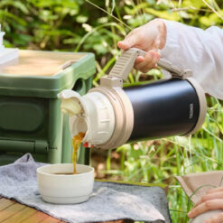 - Built-in stainless steel cup and plastic sharing cup let you serve beverages anywhere.