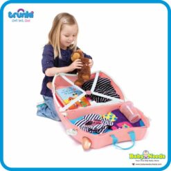 Little fairies can ride, carry, or be towed along to save tired feet. As with all Trunki ride on suitcases Flora the Fairy Trunki has an 18-litre capacity, a comfy saddle, secure lockable catches, a soft rubber trim, and an internal pocket and teddy bear seat belt.
