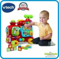 VTech Sit-to-Stand Push and Ride Alphabet Train Make tracks with the Push and Ride Alphabet Train, teaching toddlers’ letters, numbers, colours, songs, stories and more! The Push and Ride Alphabet Train features 26 double-side letter blocks, a book with six turning pages, five colourful number buttons, one movable elephant character, a motion sensor, a ride-on carriage and a drop-space for sending the blocks from the train to the carriage. Use alone for floor play, push along as a walker, or attach to the carriage as a ride-on toy!